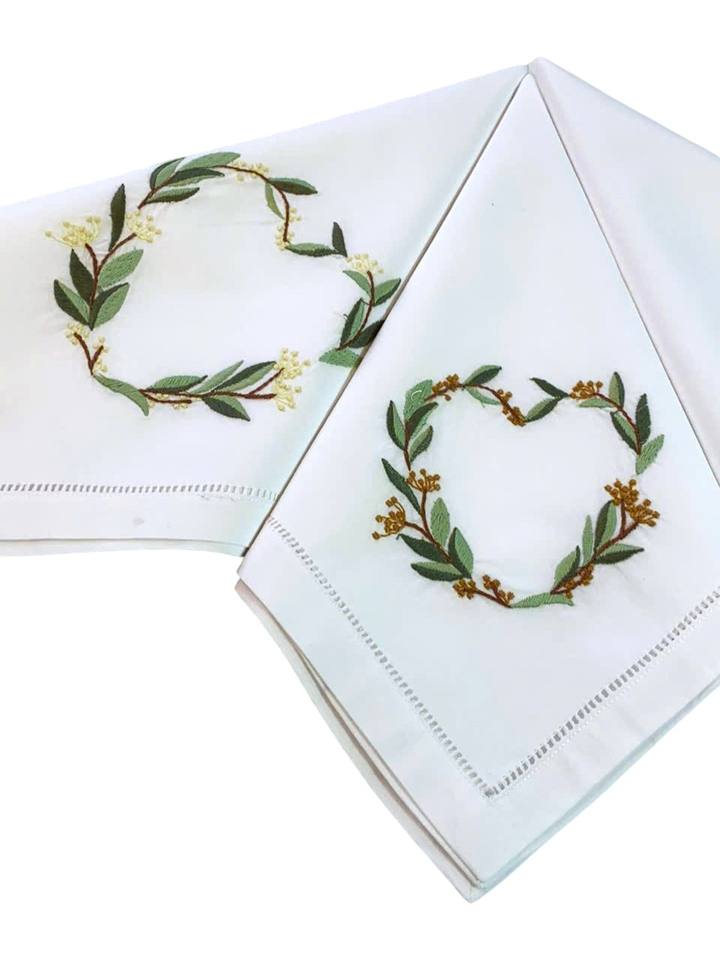 ผ้าเช็ดปากผ้าฝ้ายปักลายดอกไม้หัวใจผ้าเช็ดปากบนโต๊ะแบบเย็บริมโต๊ะสำหรับบ้านโรงแรมงานอีเวนท์วันหยุด
