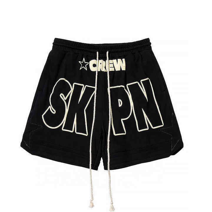 กางเกงขาสั้นผ้าฝ้ายเอวกลาง พิมพ์ลายโลโก้ สไตล์สตรีทแวร์ บาสเก็ตบอล วิ่ง ออกกำลังกาย คุณภาพสูง พิมพ์ลายนูน 3 มิติ ฮิปฮอป สำหรับผู้ชาย