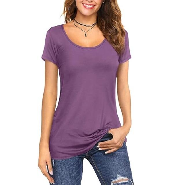 เสื้อยืดคอกลมแขนสั้นทรงหลวมสำหรับสตรีผ้าฝ้ายแบบสั่งตัดสีม่วงอ่อนสำหรับฤดูร้อน