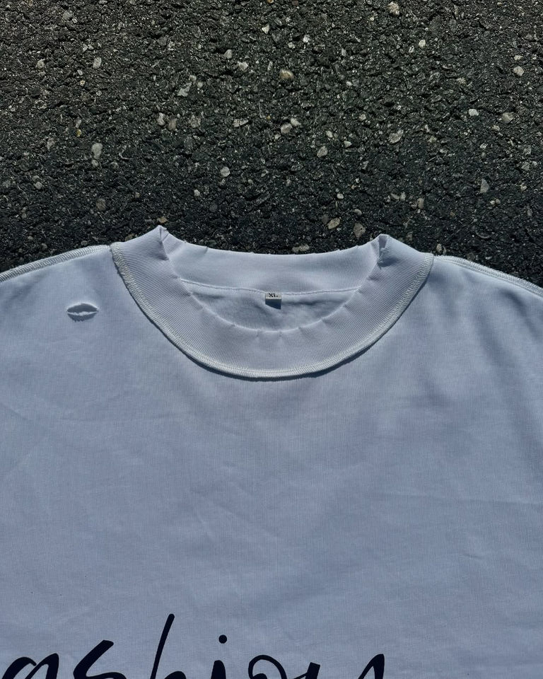 เสื้อยืดผ้าฝ้ายออกแบบได้ตามต้องการสำหรับผู้ชายเสื้อยืดสตรีทแวร์แบบมีรอยเย็บแบบรูด้านหลัง