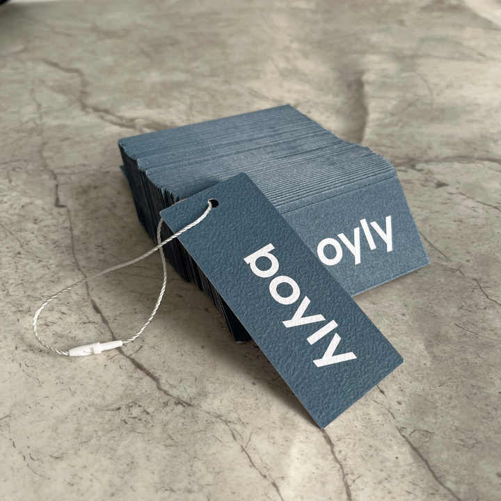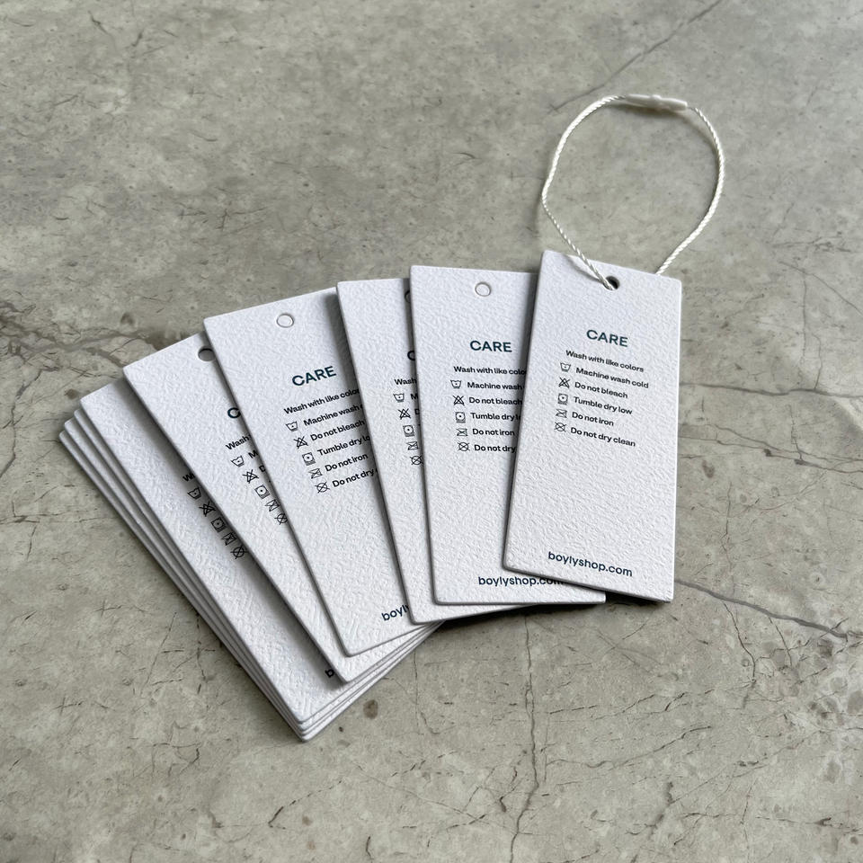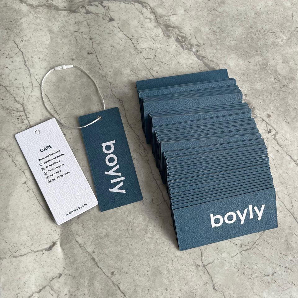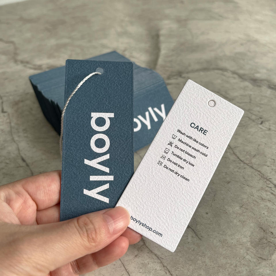 ป้ายแขวนเสื้อผ้าทำจากกระดาษเนื้อผ้าฝ้ายแบบกำหนดเอง - ป้ายเสื้อผ้าแบบนูน/พิมพ์พร้อมเชือกสำหรับเสื้อผ้าและรองเท้า