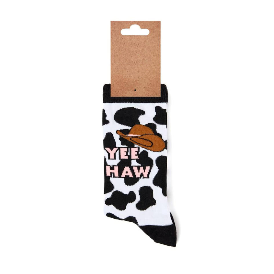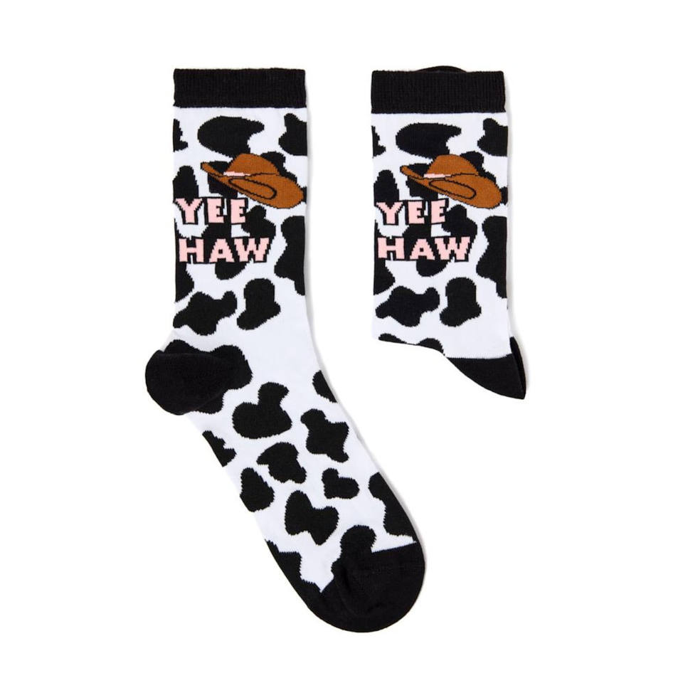 ถุงเท้าผู้ชายลายคาวบอยแบบกำหนดเอง ผลิตในเวียดนาม ลายตัวอักษร Yee Haw ถักทอ ป้องกันแบคทีเรีย กันลื่น แห้งเร็ว ผู้ผลิต ODM สไตล์ลำลอง