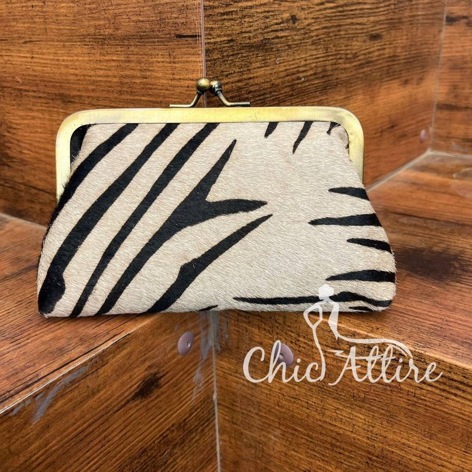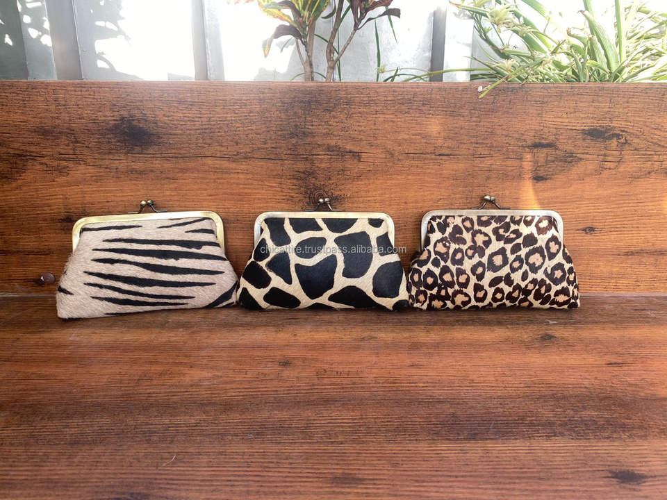 กระเป๋าใส่เหรียญหนังวัวขนาดเล็กสำหรับเดินทางกลางแจ้งพิมพ์ลายสัตว์หนังแท้อเนกประสงค์พร้อมคลิปโลหะ