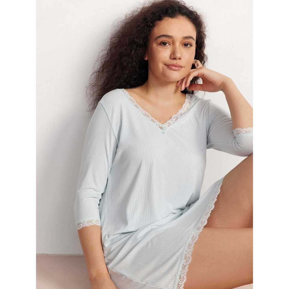 ชุดนอนคอซี่แบบสั่งทำพิเศษ 3/4 แขน ผ้าใยไผ่นุ่มยั่งยืน ถักแบบริบ ผสมโมดอลและสแปนเด็กซ์ พร้อมเชือกผูกแบบสั่งทำพิเศษ สำหรับใส่ในบ้านช่วงฤดูใบไม้ผลิ