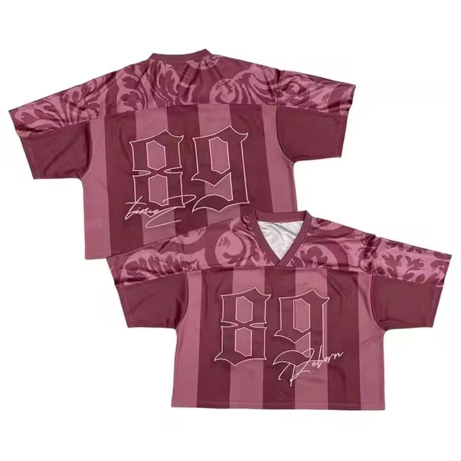 ออกแบบเสื้อฟุตบอลอเมริกันชายของคุณเอง ทรงปกติ แบบครอป โอเวอร์ไซส์ ผ้าโพลีเอสเตอร์ 100% ตาข่าย แขนสั้น