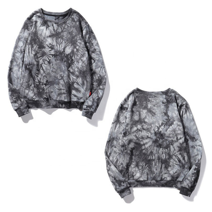 สเวตเชิ้ตแขนยาววินเทจสำหรับผู้ชายผ้าฝ้ายย้อมสีผูกคอแบบลูกเรือออกแบบได้ตามต้องการ