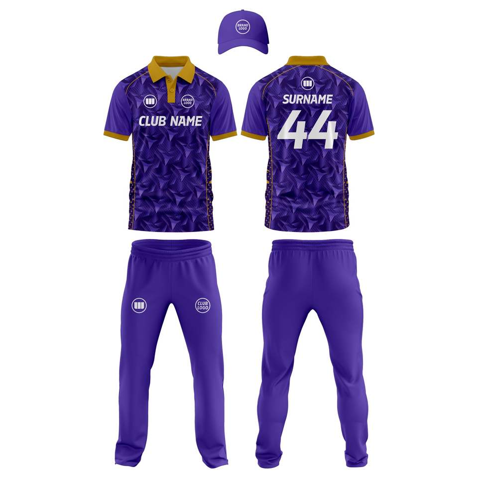 ชุดยูนิฟอร์มทีมคริกเก็ตพิมพ์ลายตามสั่ง ผ้าโพลีเอสเตอร์ 100% ชุดเสื้อและกางเกงสำหรับกีฬาแบบมืออาชีพ บริการ OEM จำนวนมาก