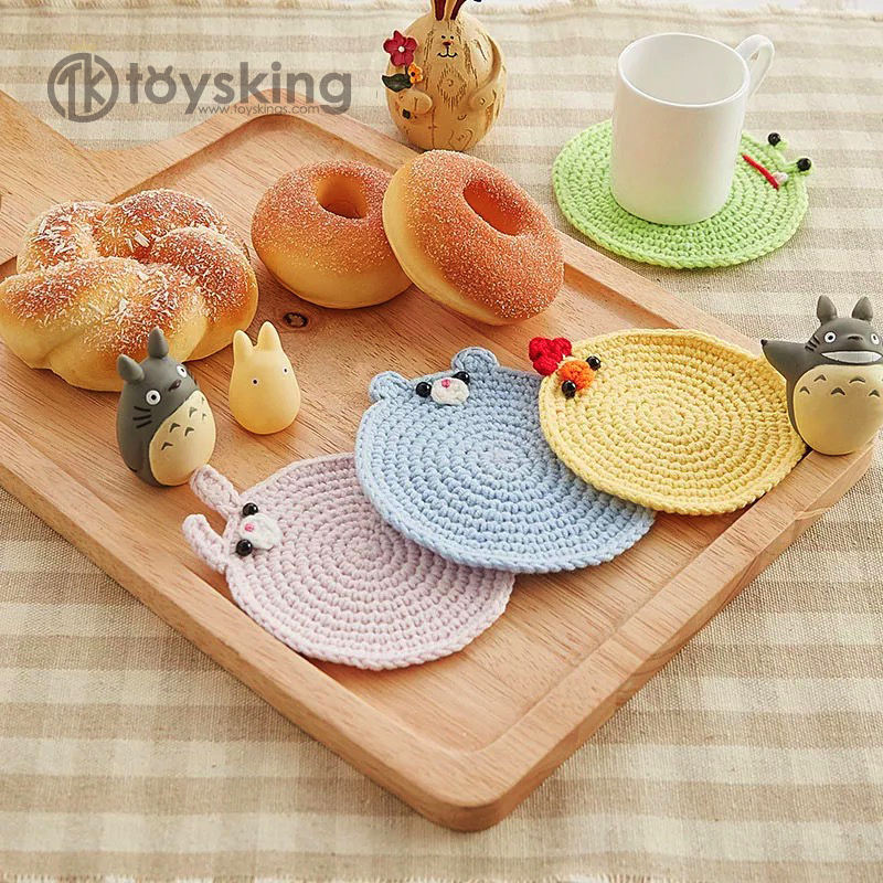 แผ่นรองแก้วถักโครเชต์รูปสัตว์ - แผ่นรองแก้วทำมือแสนนุ่มสบาย ของตกแต่งบ้านและของขวัญส่วนตัว พร้อมออกแบบฟรี
