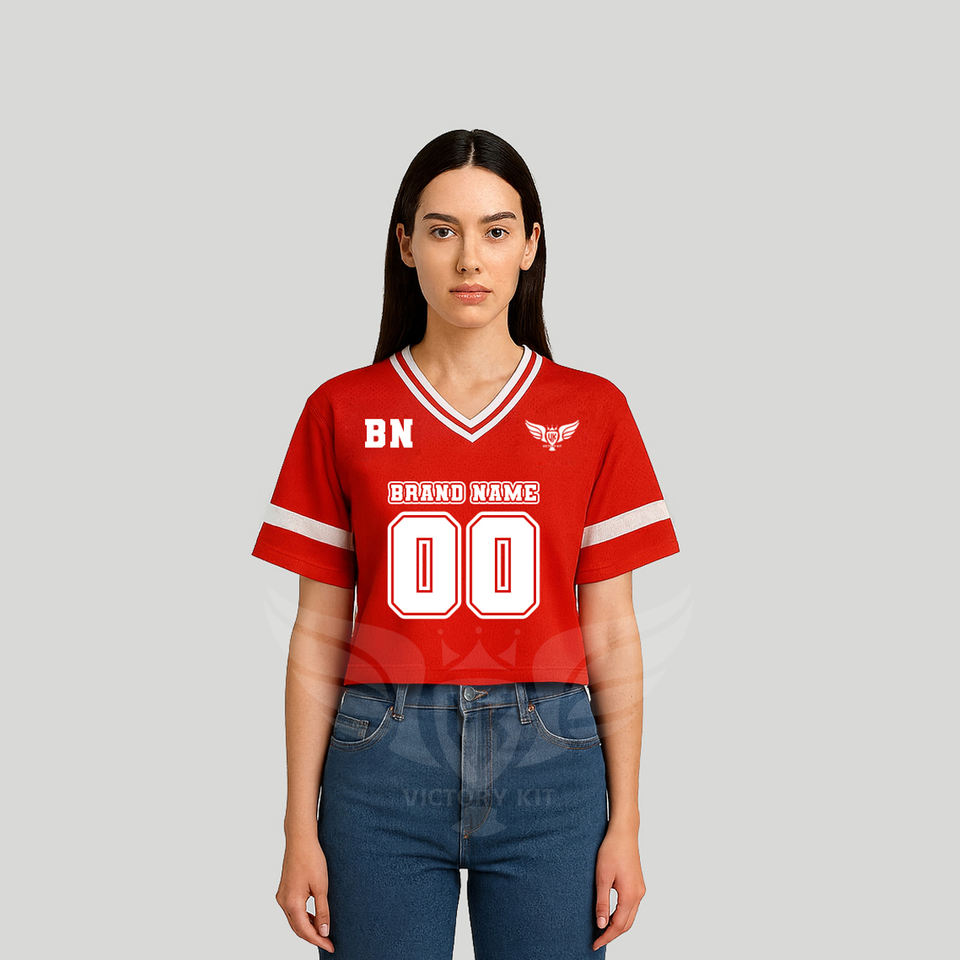 เสื้อฟุตบอลแบบครอปสั่งทำพิเศษ เสื้อทีมครอปสำหรับผู้หญิงพร้อมชื่อและหมายเลข สตรีทแวร์ ฮิปฮอป เสื้อกีฬา