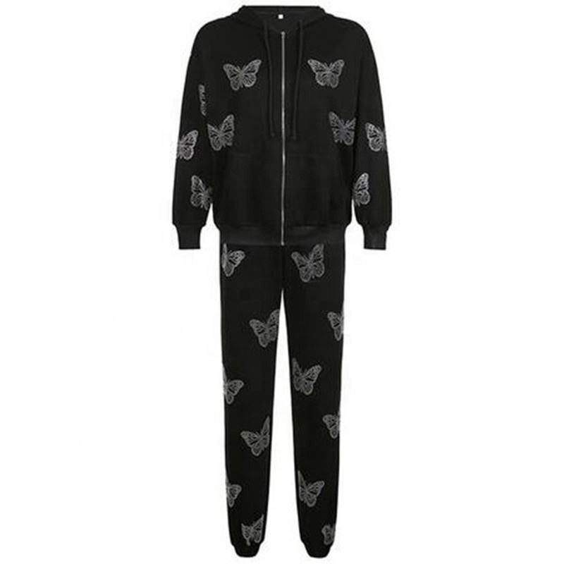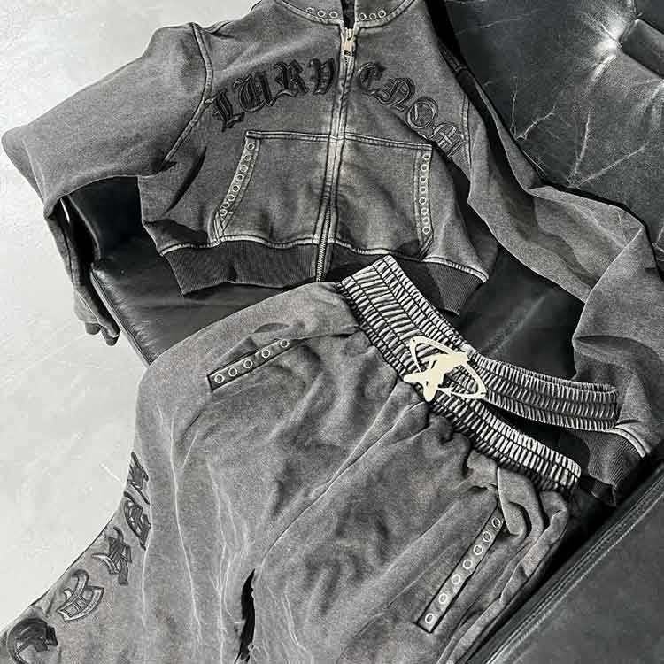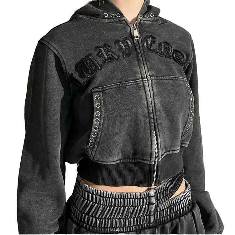 Custom Crop Top Hoodies Sets Women Vintage Wash/stone Wash/acid Wash Hoodie Tracksuit Straight Leg Pants and Flat Embroidery