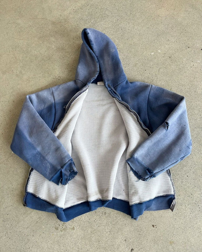 Custom Cropped Boxy Vintage Wash Zipper Hoodie for Men 100% Cotton Double Layer Distress Acid Wash Casual Style for Winter