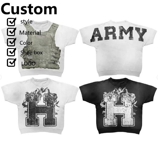 เสื้อยืดบ็อกซี่ผ้าฝ้ายวินเทจโอเวอร์ไซซ์สะพายไหล่ทรงครอปคอกลมออกแบบได้ตามต้องการ