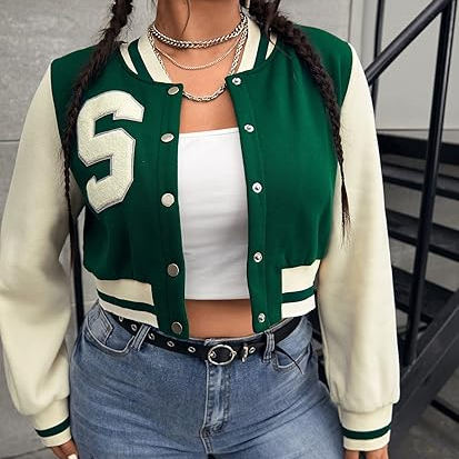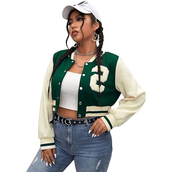 แจ็คเก็ตบอมเบอร์ของผู้หญิงเสื้อครอปสไตล์เบสบอลของผู้หญิงเสื้อครอป