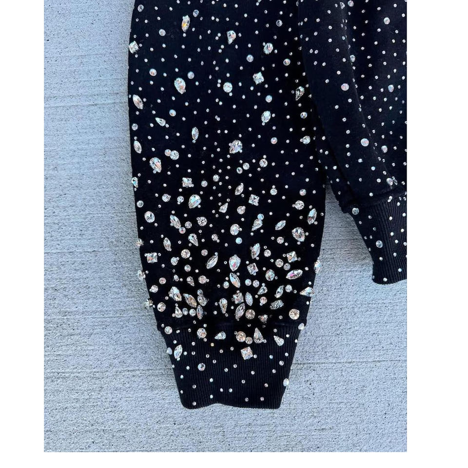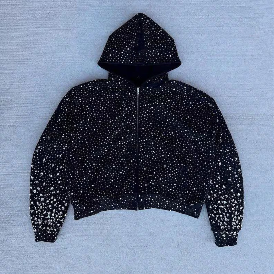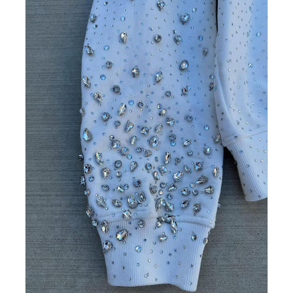 เสื้อฮู้ดซิปแบบครอปพิเศษ คุณภาพพรีเมียม ผ้าฝ้ายฟลีซ 100% สไตล์สตรีทแวร์ ประดับคริสตัลวิบวับ ปักลายสำหรับฤดูใบไม้ร่วง