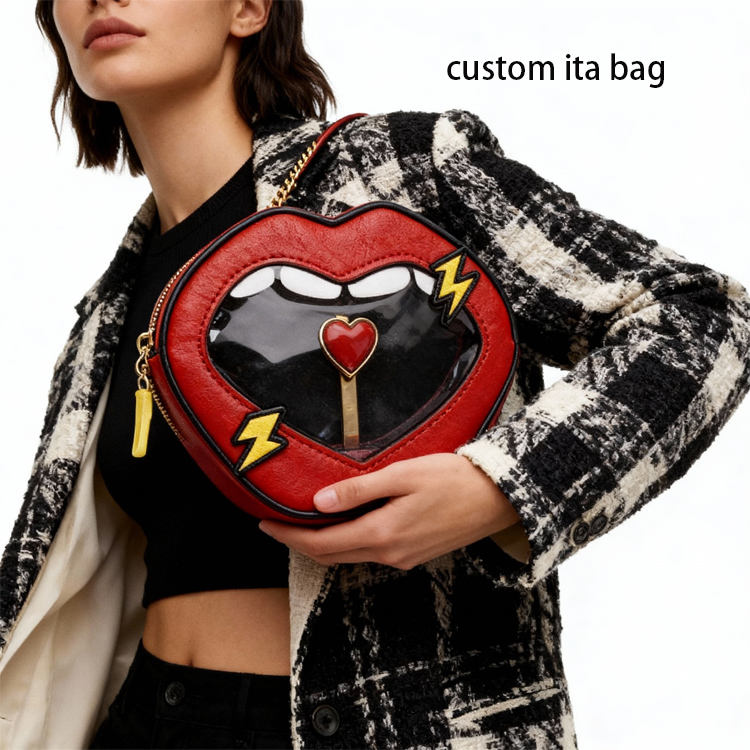 กระเป๋าถือสะพายข้างหนัง PU ลายแมวร้องไห้สีแดง ปากแดง ลายสูตรคณิตศาสตร์ หน้าต่างรูปหัวใจ สำหรับแฟนคลับ