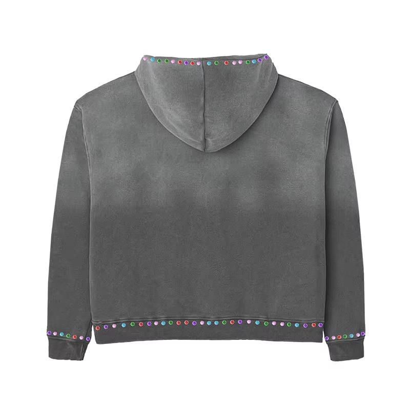 เสื้อฮู้ดคริสตัลประดับเพชรสำหรับผู้หญิง แบบซิปเต็มตัว พร้อมโลโก้และลายพิมพ์