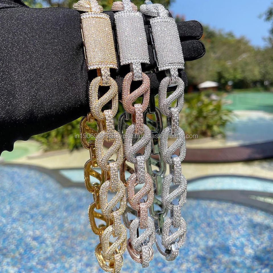 สร้อยคอคิวบาแบบกำหนดเอง สไตล์ฮิปฮอป เงินสเตอร์ลิง ชุบทอง ประดับโมอิสซาไนต์ ดีไซน์แบบกริด สำหรับผู้ชายและผู้หญิง สตรีทแวร์