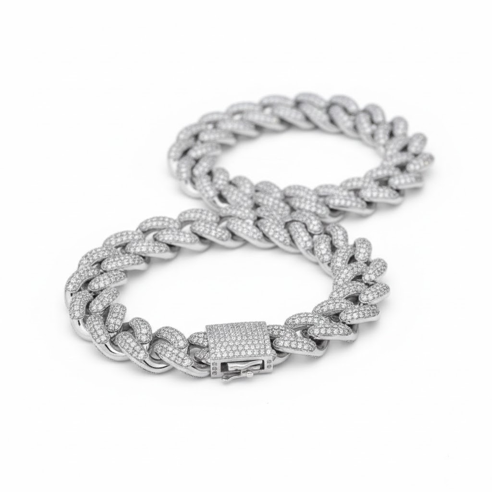 Custom Cuban Link Hip Hop Chain Sterling Silver Moissanite or Lab Diamond Plus 10K & 14K Gold Lab Diamond Luxury Necklace