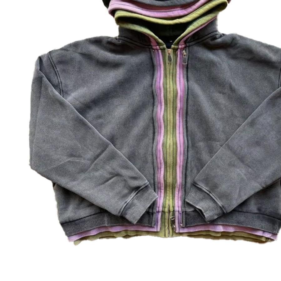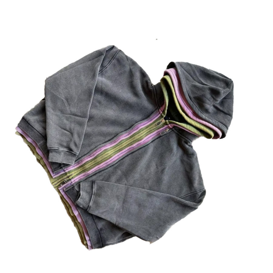 เสื้อมีฮู้ดสามชั้นสำหรับผู้ชายเสื้อผ้าฝ้ายแนวสตรีทรูดซิปออกแบบโลโก้ได้ตามต้องการ