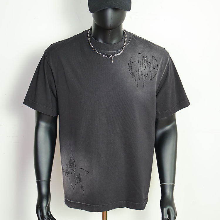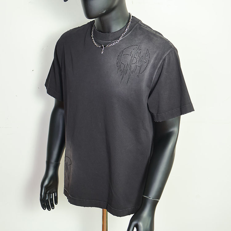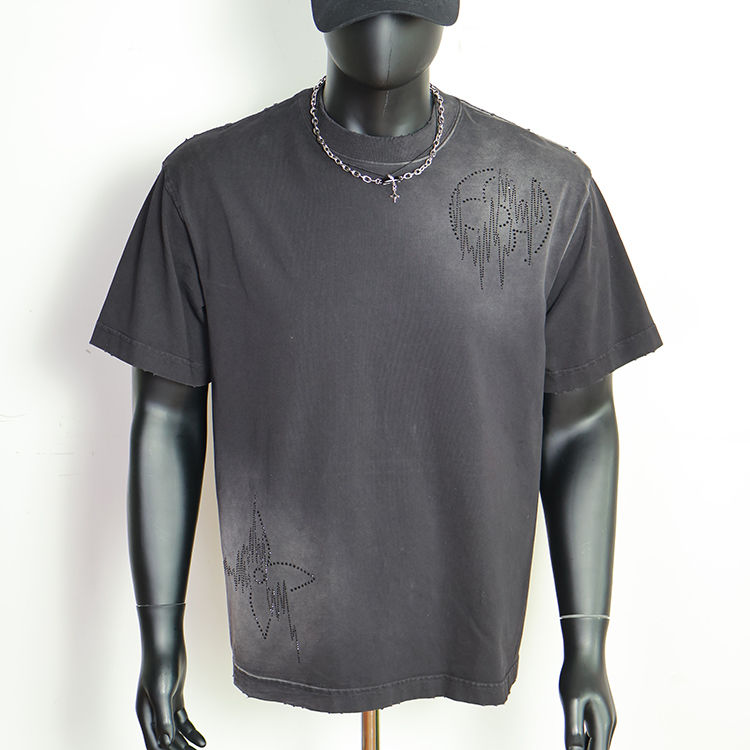 เสื้อยืดโอเวอร์ไซส์ทรงบ็อกซี่ ตัดเย็บพิเศษ สไตล์วินเทจ ผ้าคอตตอน 100% พิมพ์ลายกราฟิก หนักแน่น ซักย้อมสีแบบแอซิดวอช ประดับคริสตัล สำหรับผู้ชาย ผลิตโดยผู้ผลิตเสื้อยืด