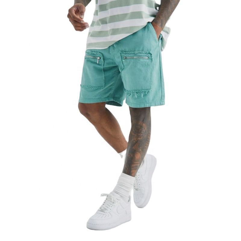 ที่กําหนดเองตัดขอบวินเทจเชือกบวกขนาดกางเกงขาสั้นผู้ชายด้อยแพทช์พัฟพิมพ์ผ้าฝ้าย100%ผู้ชายหินกรดล้างกางเกงขาสั้น