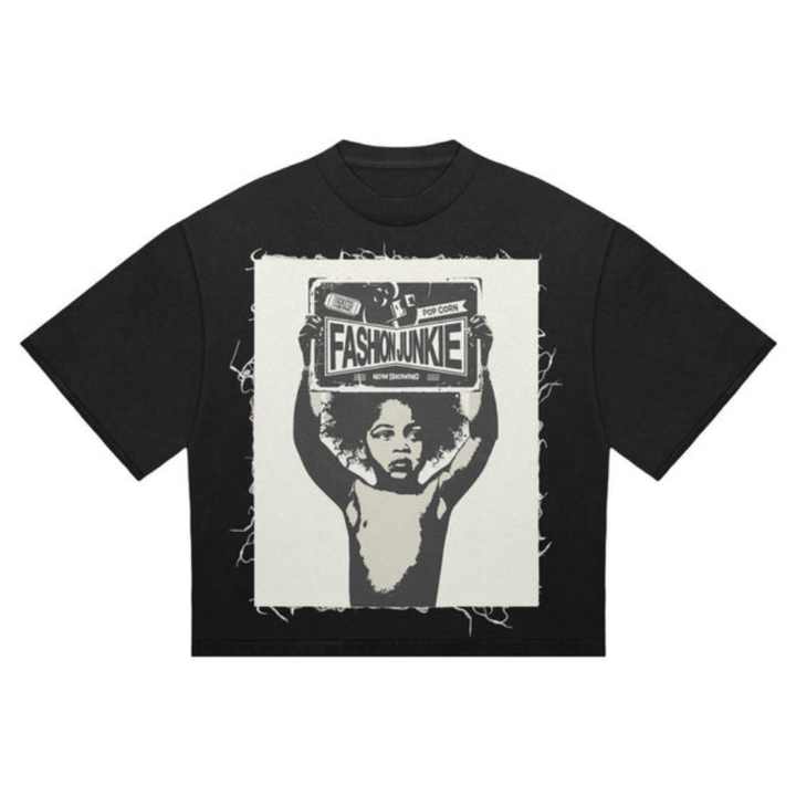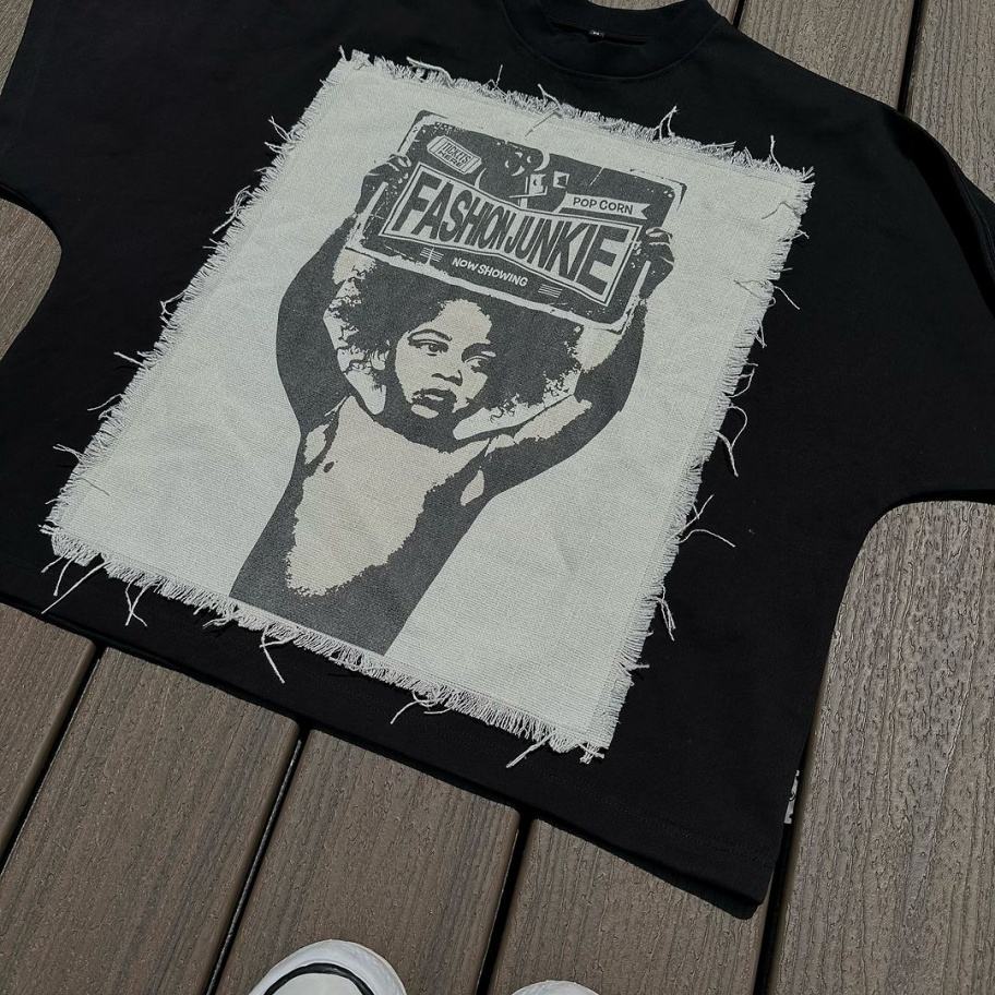 เสื้อยืดคอตตอนถักทรงโอเวอร์ไซส์ ลุควินเทจ ขอบดิบ แต่งย้อมสีแบบแอซิดวอช พิมพ์ลายโลโก้ด้วยเทคนิค DTG ตัดเย็บตามสั่ง สำหรับผู้ชาย