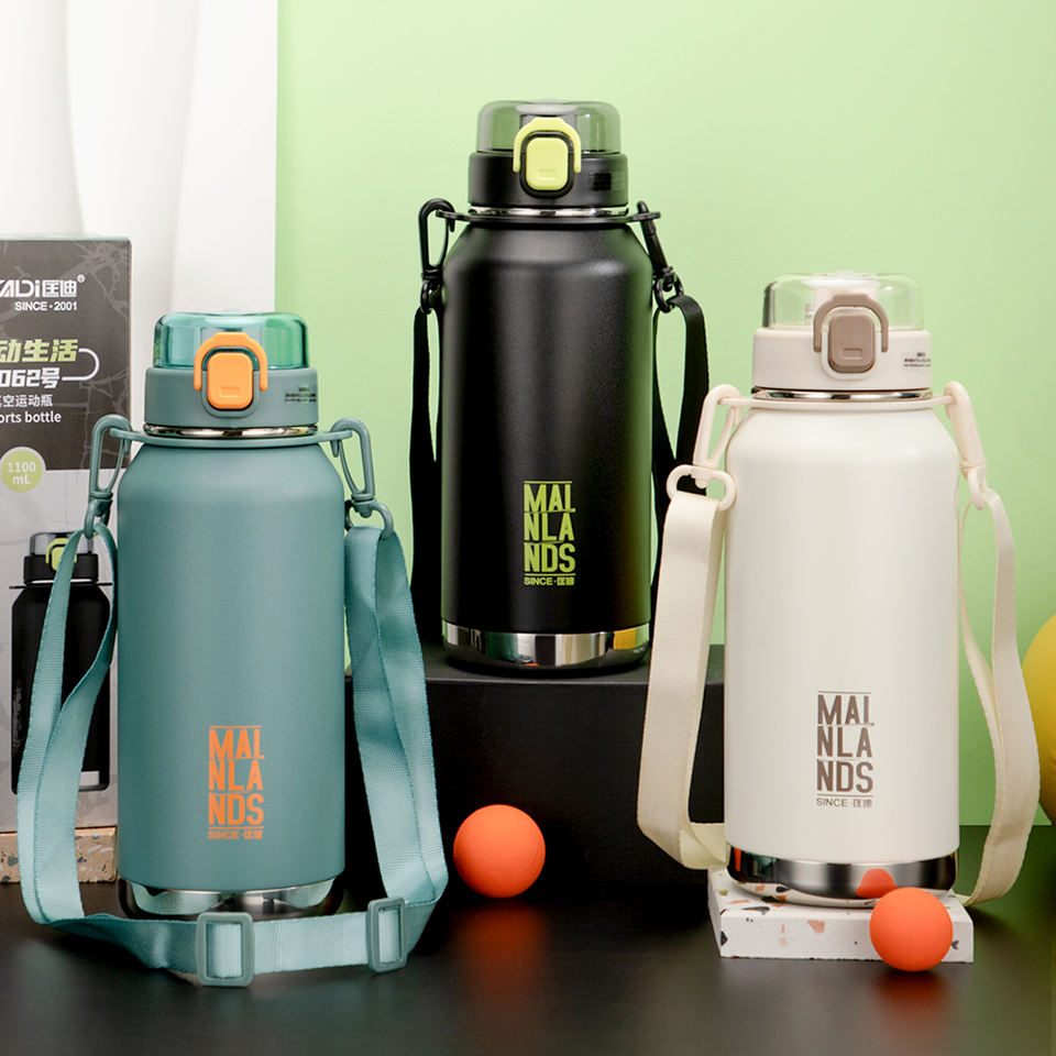 กระติกน้ำสแตนเลสแบบพกพา1100มล. ลายการ์ตูนน่ารักออกแบบได้ตามต้องการกระติกน้ำเก็บความเย็นได้สองชั้นสำหรับเดินทางเดินป่า