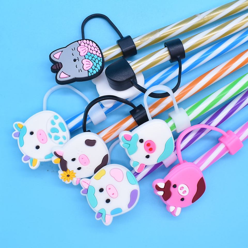 หมวกฟางการ์ตูนน่ารักแบบกำหนดเอง ขายส่ง ที่ครอบหลอดซิลิโคนแบบพกพาสำหรับอุปกรณ์บาร์