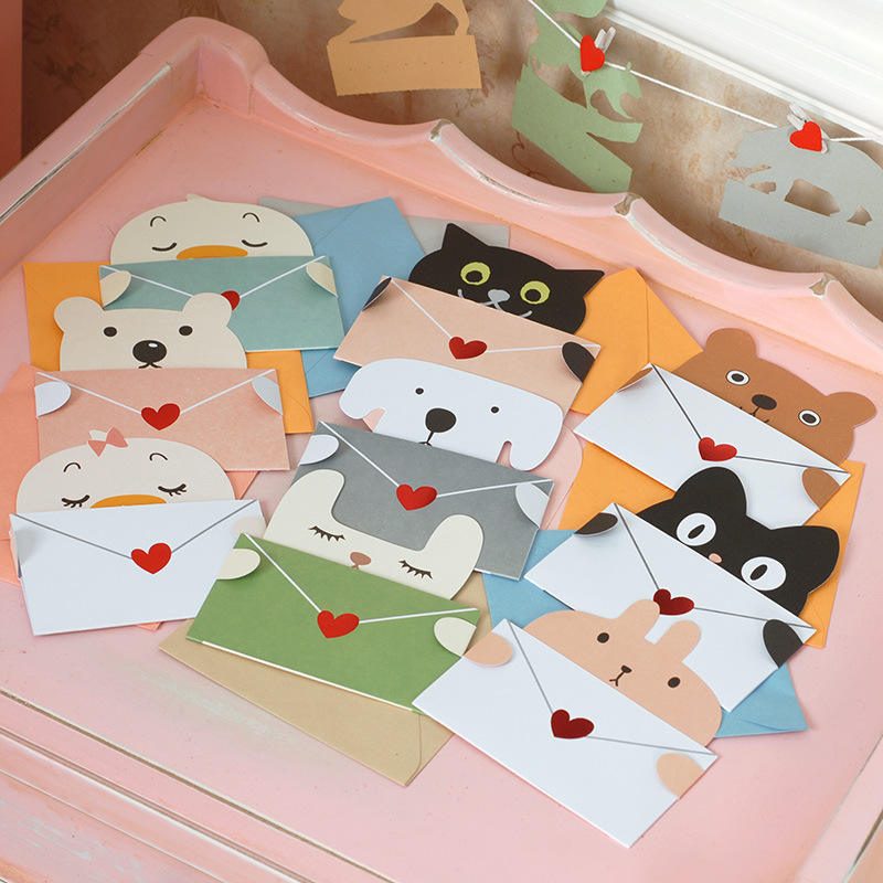กระดาษเขียนจดหมายลายสัตว์น่ารักแบบทำเอง ชุดอุปกรณ์เขียนการ์ดอวยพร ซองจดหมาย การ์ดขอบคุณ สำหรับเด็ก วันเกิด คริสต์มาส ปีใหม่