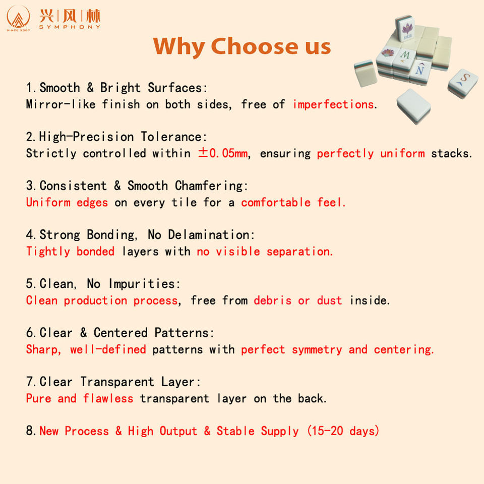 ไพ่นกกระจอก 4 ชั้น, ไพ่นกกระจอก PMM, ไพ่นกกระจอกอะคริลิคแบบอเมริกัน, ไพ่นกกระจอกสีเขียว, ไพ่นกกระจอกสั่งทำพิเศษ ขั้นต่ำน้อย, ไพ่นกกระจอกอเมริกัน