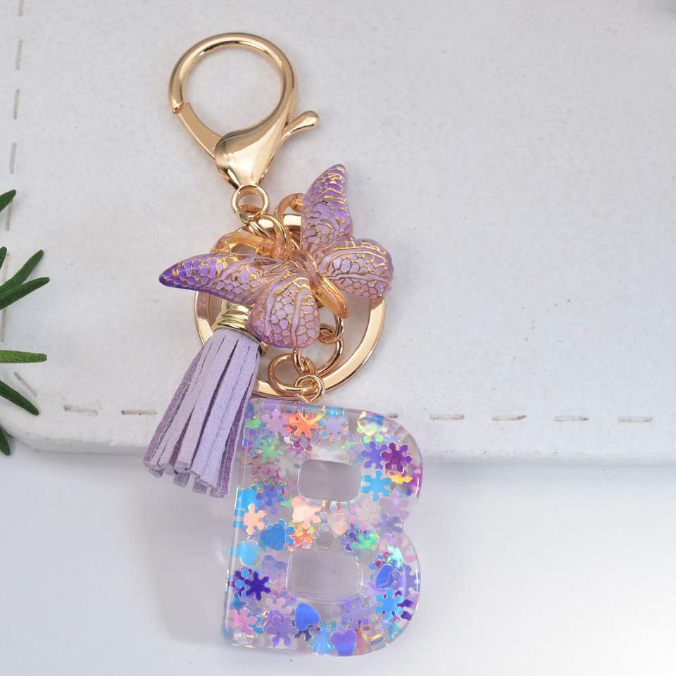 Custom Cute Plush Keychain Handbag 26 English Word Keyring Tassel Resin Alphabet Letter Keychain for Women and Girls