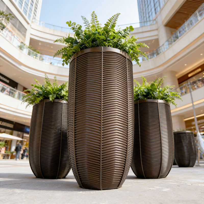 Custom Tall Fiberglass Metallic Planter for Shopping Mall Atrium Decor