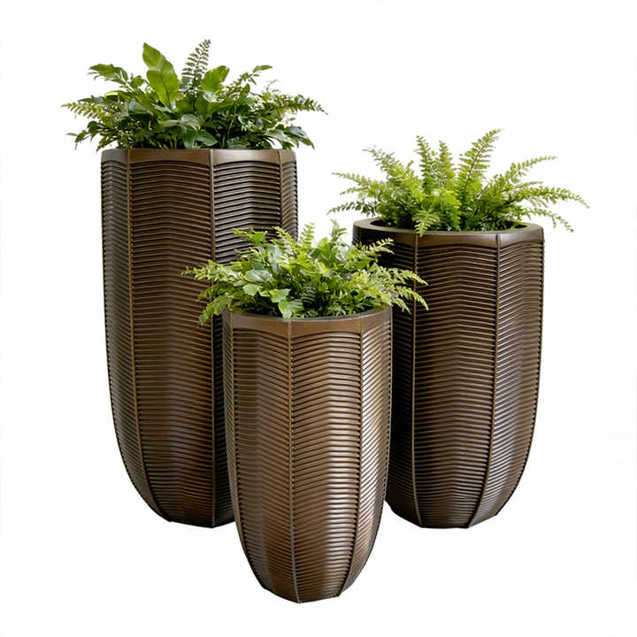 Grey Metallic FRP Flower Pot Modern Industrial Plant Pot