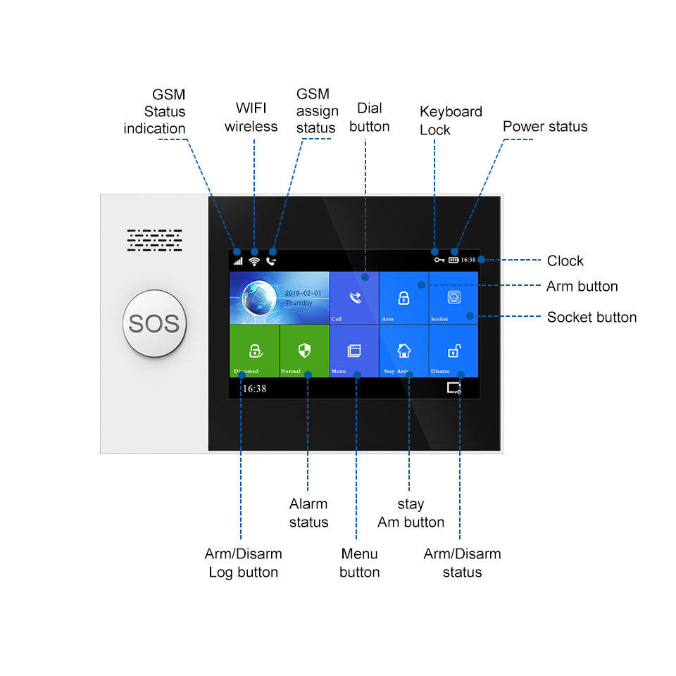 ระบบเตือนภัยกันขโมยบ้านแบบไร้สาย DAYTECH TA04-KIT13 ควบคุมผ่านแอป Tuya หน้าจอสัมผัสเต็มรูปแบบ รองรับ WiFi และ GSM