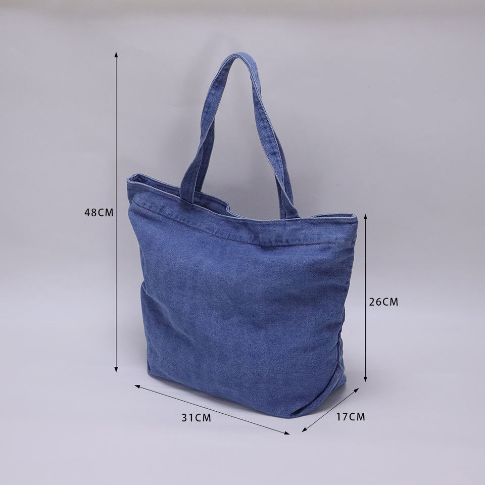 กระเป๋าผ้ายีนส์แบบมีซิปสำหรับผู้หญิงกระเป๋าโท้ทแบบมีซิปสำหรับเดินทางโลโก้แบบออกแบบได้ตามที่ต้องการ
