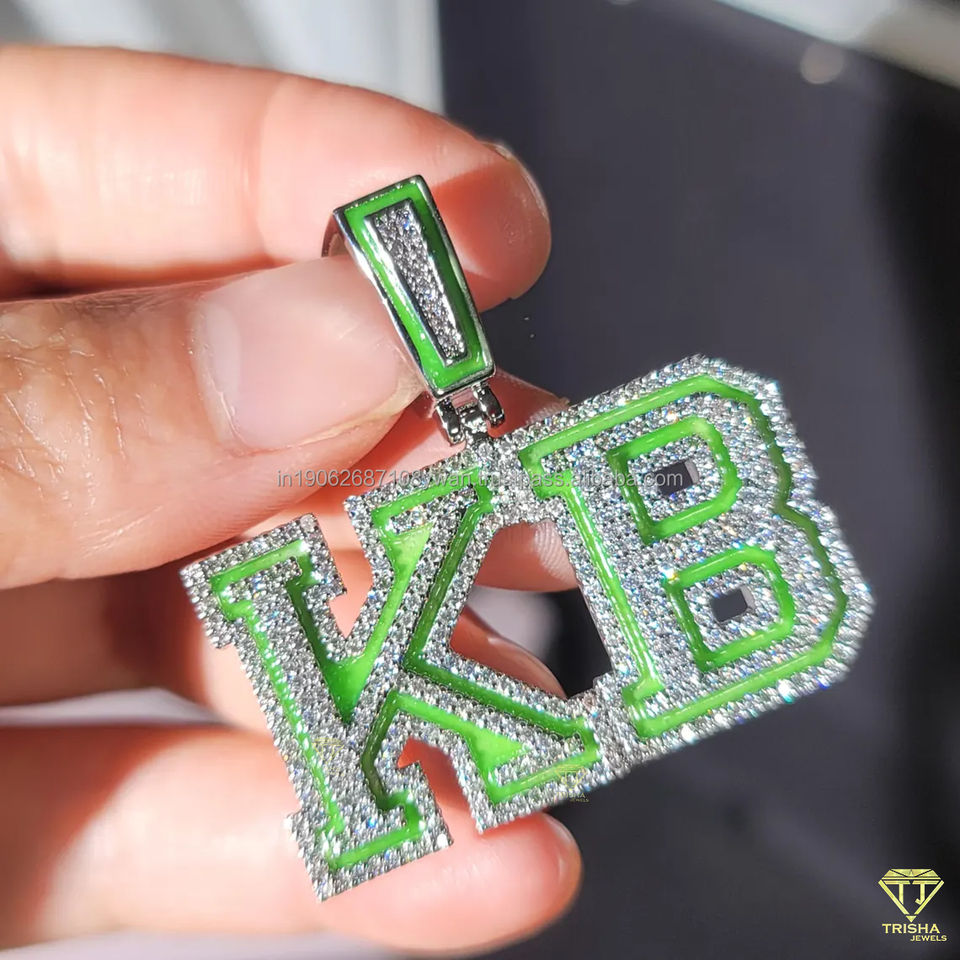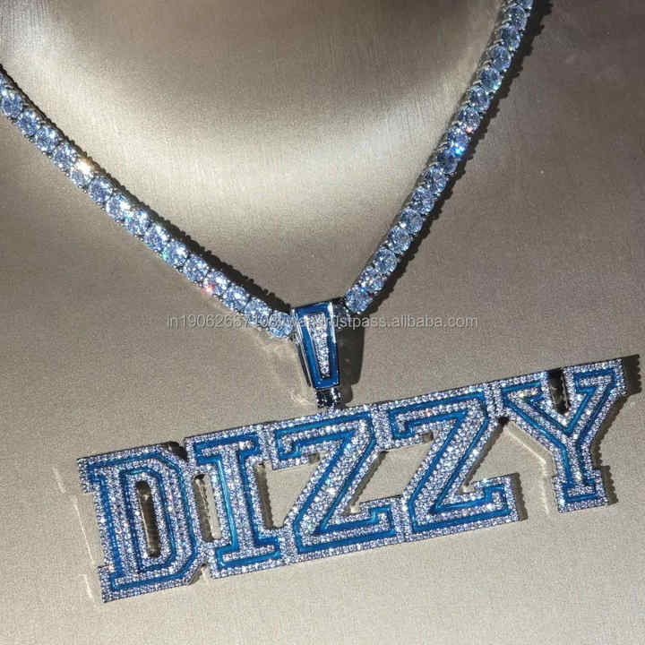 สร้อยคอจี้ชื่อเพชรมอยส์ซอไนต์สำหรับผู้ชายสร้อยคอเคลือบสีน้ำเงิน