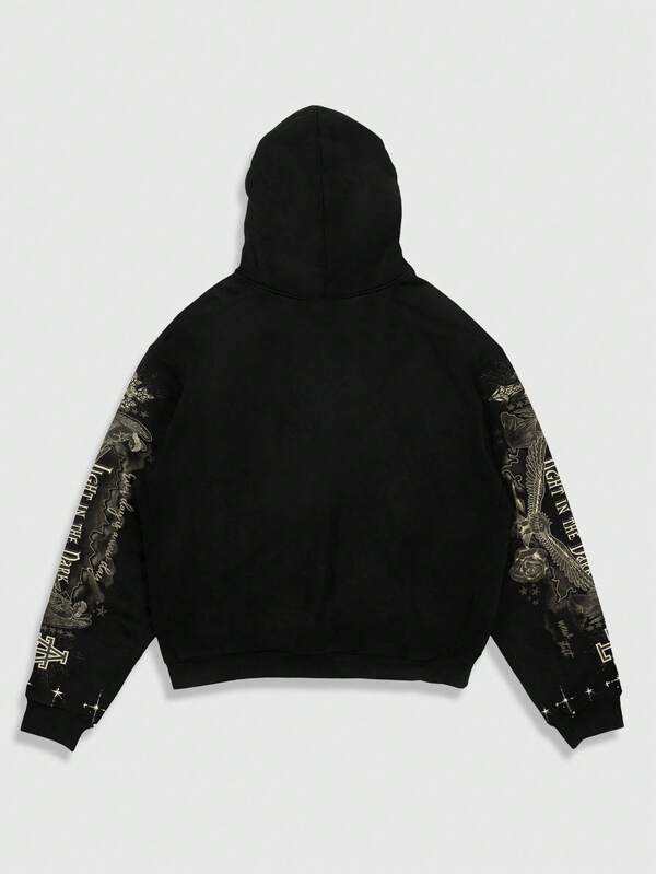 เสื้อฮู้ดมีซิปด้านหน้าสำหรับสตรีทแวร์ผ้าฟลีซ460GSM พิมพ์ลายกราฟฟิกแบบล้างกรดโอเวอร์ไซส์ออกแบบได้ตามต้องการ