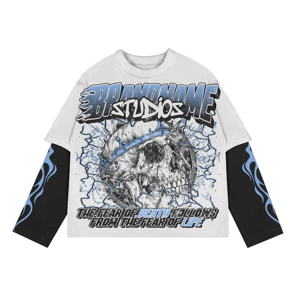 เสื้อยืดลายกราฟิกแบบดั้งเดิม พิมพ์ลาย DTG สองชั้น ทรงปกติ ผ้าฝ้าย 100% แขนยาว สไตล์ Y2K เป็นมิตรกับสิ่งแวดล้อม ระบายอากาศได้ดี