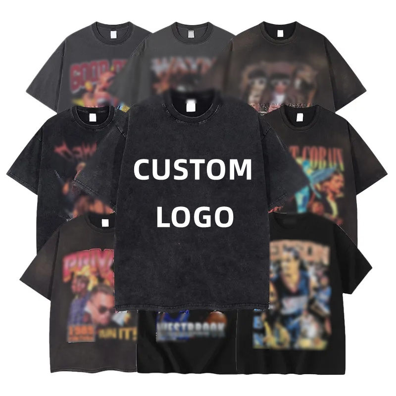 เสื้อยืดคอตตอน 100% พิมพ์ลาย DTG แบบกำหนดเอง ทรงโอเวอร์ไซส์ หนานุ่ม ซักย้อมสีแบบวินเทจ สไตล์สตรีทแวร์ ยูนิเซ็กส์