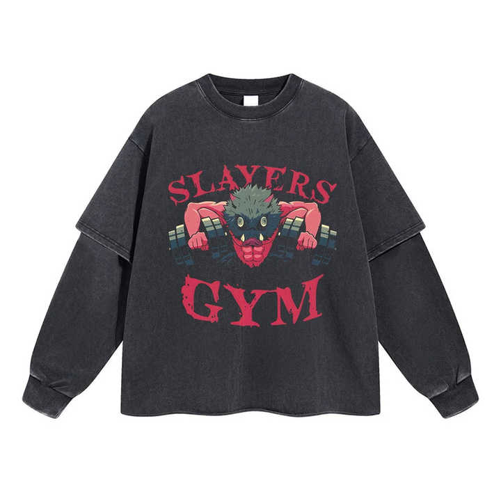 เสื้อยืดผู้ชายทรงโอเวอร์ไซส์ แขนยาว คอใหญ่ ผ้าคอตตอนถัก 100% พิมพ์ลาย DTG สไตล์เรโทร สองชั้น แบบ Y2K