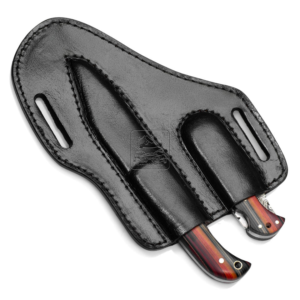 ชุดมีดเหล็กดามัสกัสด้ามไมโครคาร์ต้าใบมีดเดี่ยวปลอกหนังพรีเมี่ยม DD-DUO-110ล่าสัตว์กลางแจ้งอเนกประสงค์ตามสั่ง