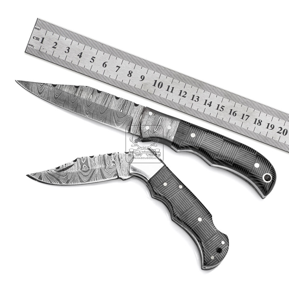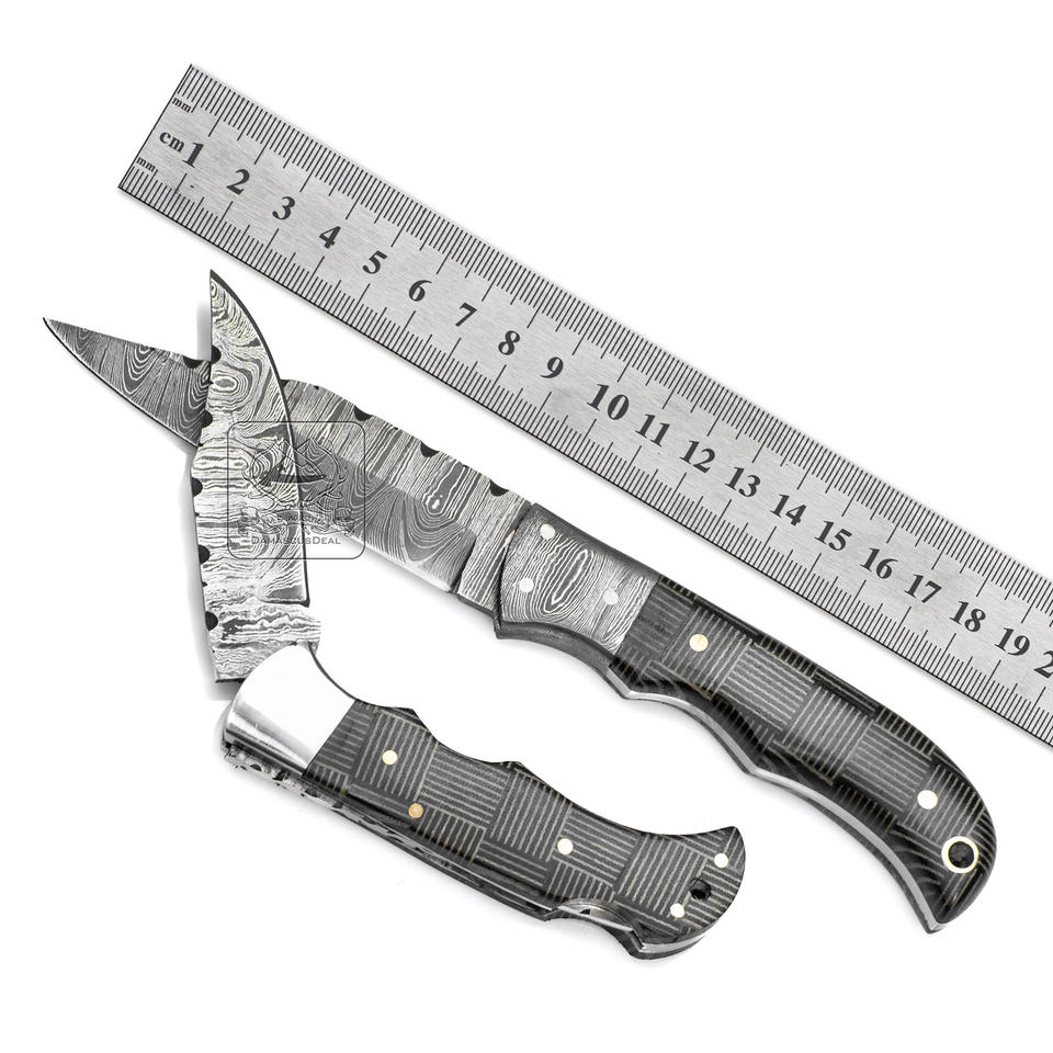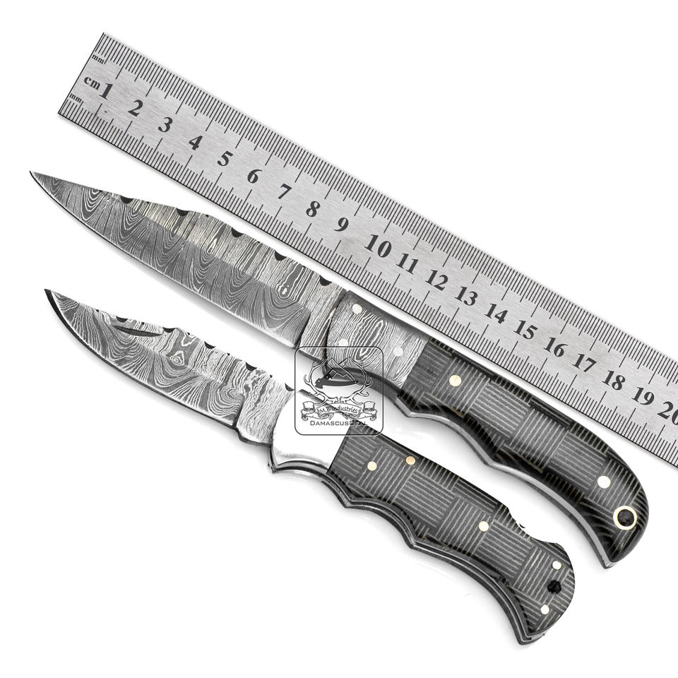 มีดเหล็กดามัสกัสแบบสั่งทำพิเศษ ด้ามไมคาร์ต้าลายกล่อง ปลอกหนังพรีเมียม ระดับอุตสาหกรรม OEM DD-DUO-101 รับประกัน 3 ปี