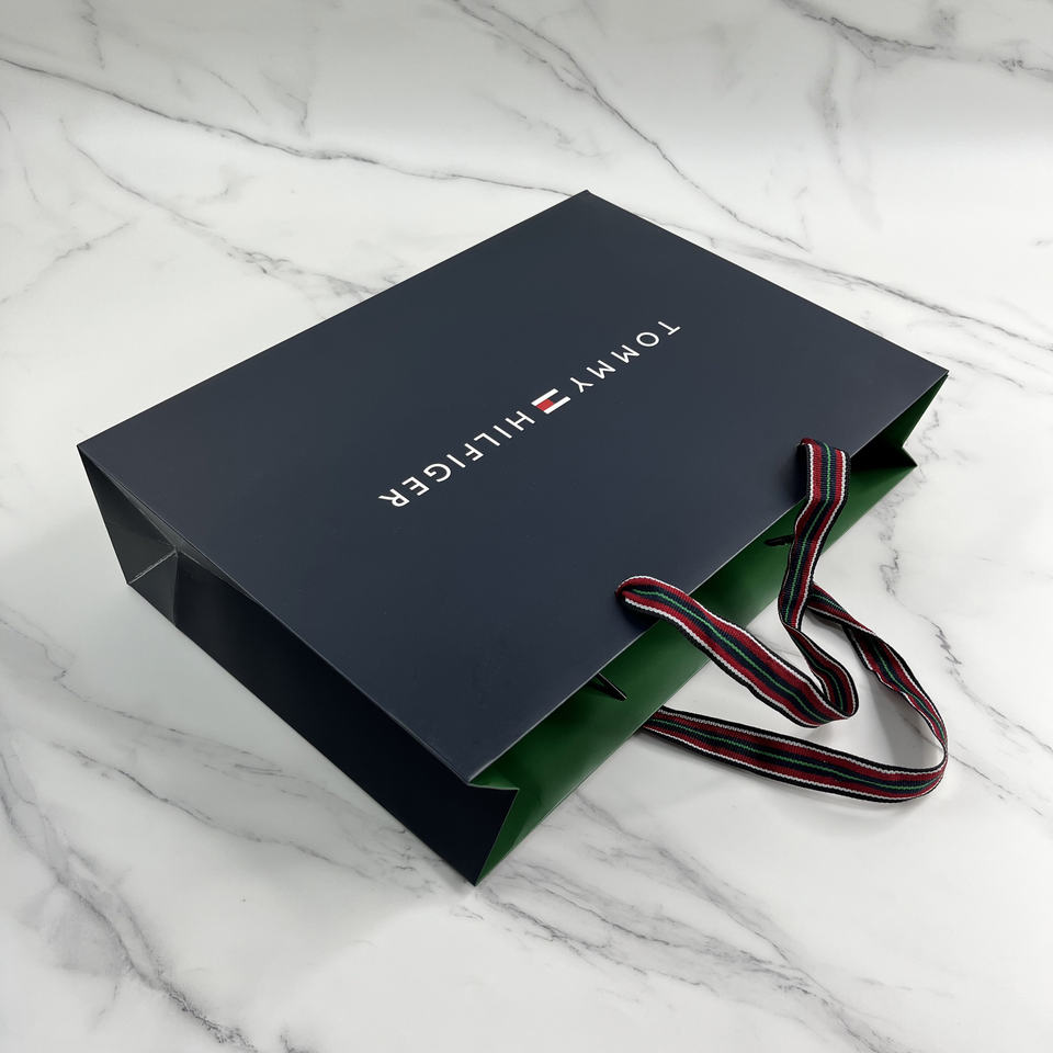 ถุงกระดาษสีน้ำเงินเข้มแบบกำหนดเองพร้อมโลโก้แบรนด์ - บรรจุภัณฑ์หรูหราสำหรับแบรนด์เสื้อผ้า
