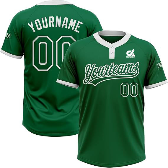 Custom Dark Green Pink Men's Baseball Jersey Button-Down Team Uniform Breathable Organic Cotton Short Sports Shirt Front