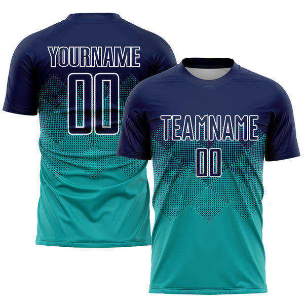 เสื้อฟุตบอลทีมสีเขียวอมน้ำเงินเข้มแบบกำหนดเอง ชุดกีฬาแขนสั้นพร้อมชื่อและหมายเลข