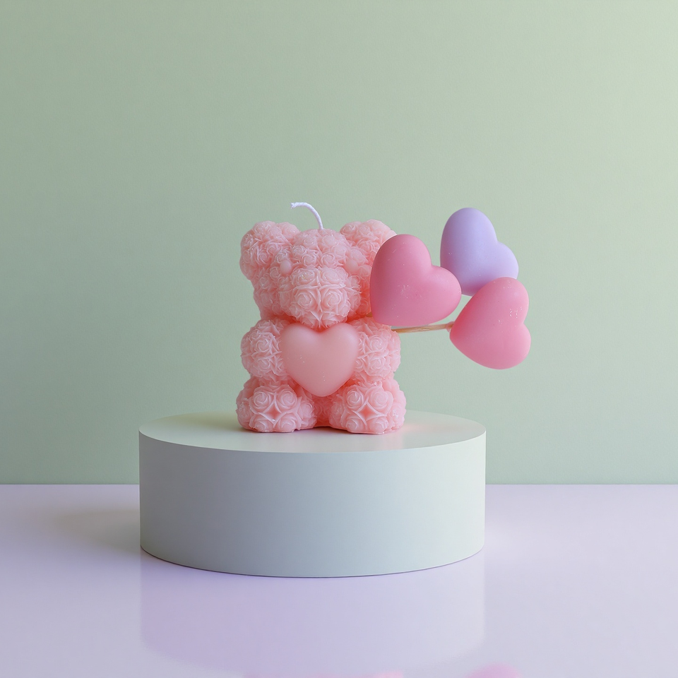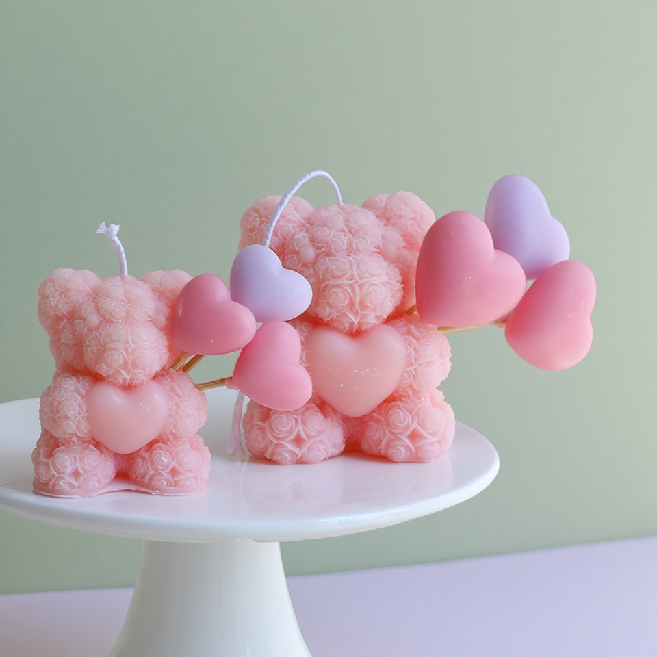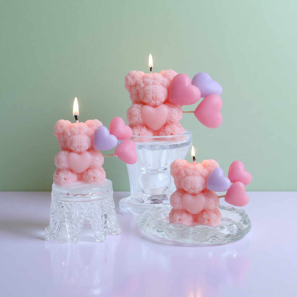 ของตกแต่งบ้าน ของขวัญวันเกิด หมีกุหลาบ เทียนหอม ไร้ควัน เป็นมิตรกับสิ่งแวดล้อม ของชำร่วยงานแต่งงาน