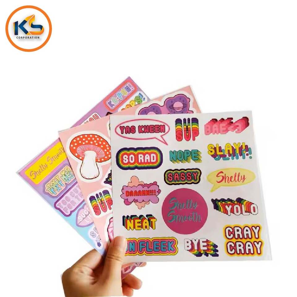 สติกเกอร์ไวนิลคุณภาพสูงแบบคิสคัท ขนาด A4 สำหรับตกแต่ง เป็นมิตรกับสิ่งแวดล้อม | สติกเกอร์พิมพ์โลโก้กันน้ำด้วยหมึก UV 100 ชิ้น