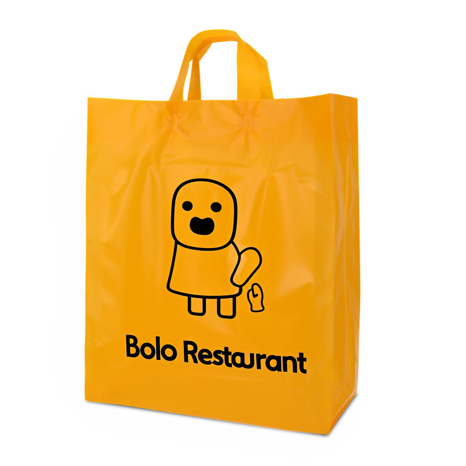 ถุงใส่อาหารทำจาก HDPE มีหูหิ้วนุ่มจัดส่งอาหารสำหรับธุรกิจขนาดเล็กร้านค้าปลีกและร้านบูติก
