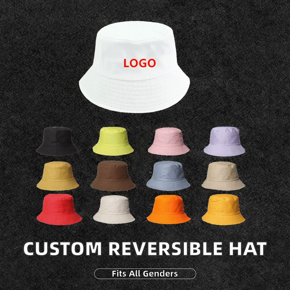 หมวกบักเก็ตยีนส์แบบกลับด้านได้ สำหรับตกปลา คุณภาพสูง ผลิตจากโพลีเอสเตอร์ สีพื้น พร้อมปักโลโก้และลายพิมพ์