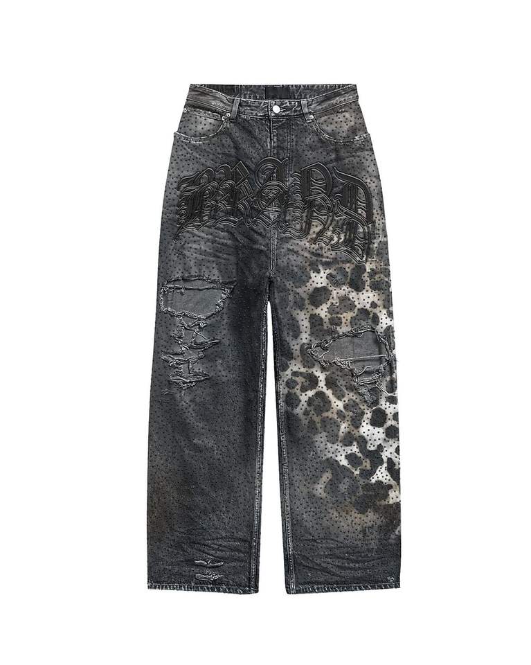 กางเกงยีนส์แบบสั่งทำ แต่งผ้าปะติดสไตล์วินเทจ ล้างสีแบบยูร์บัน สตรีทแวร์ ผ้าเนื้อดี ทรงพอดีตัว เอวสูง ติดกระดุม